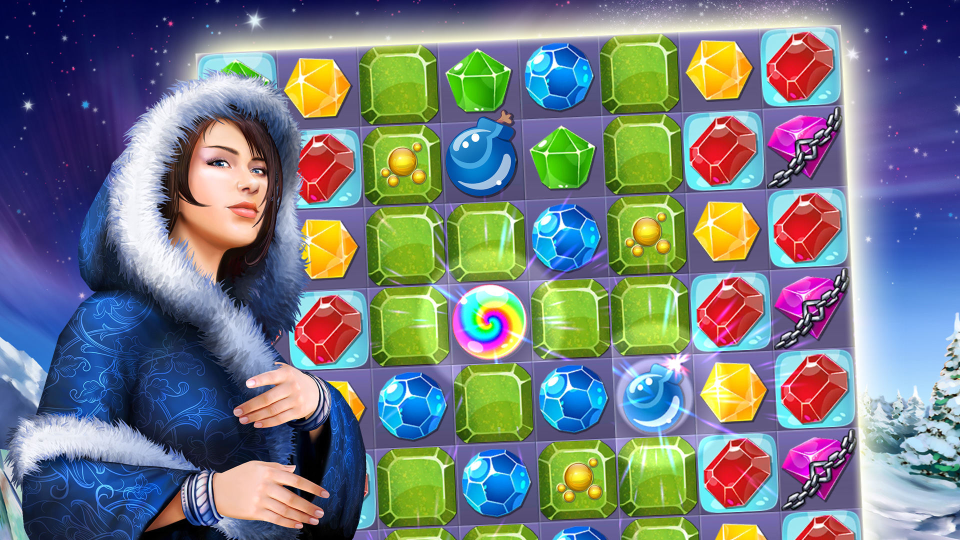 - Уникальный геймплей - составляйте комбинации три-в-ряд и наслаждайтесь интересной историей!